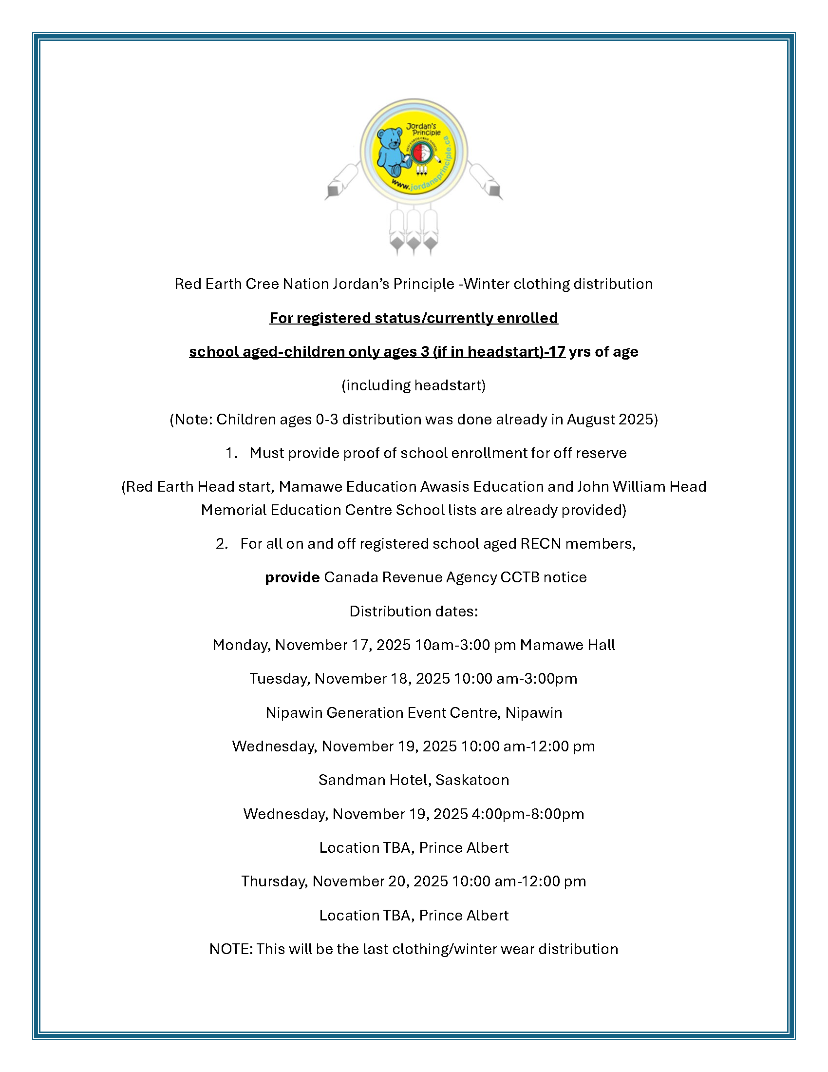 Red Earth Cree Nation Jordan’s Principle -Winter clothing distribution